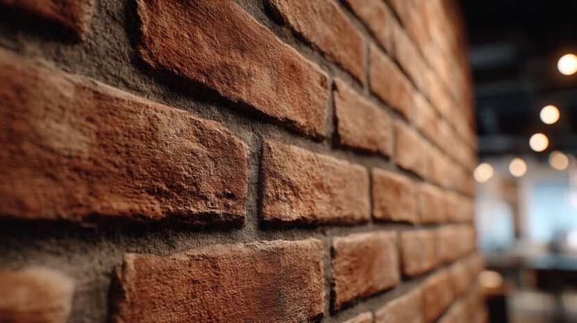 Full brick construction rarely makes sense indoors. Thin brick veneer gives the look with less structural complexity, and proper mortar joints matter more than any brand name.
